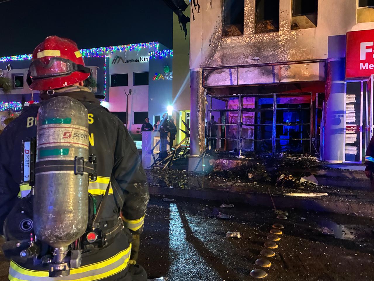 En cuestión de minutos los tragahumo lograron contener el incendio para evitar que este se propagara hacia una farmacia contigua o al propio jardín de niños a un costado.