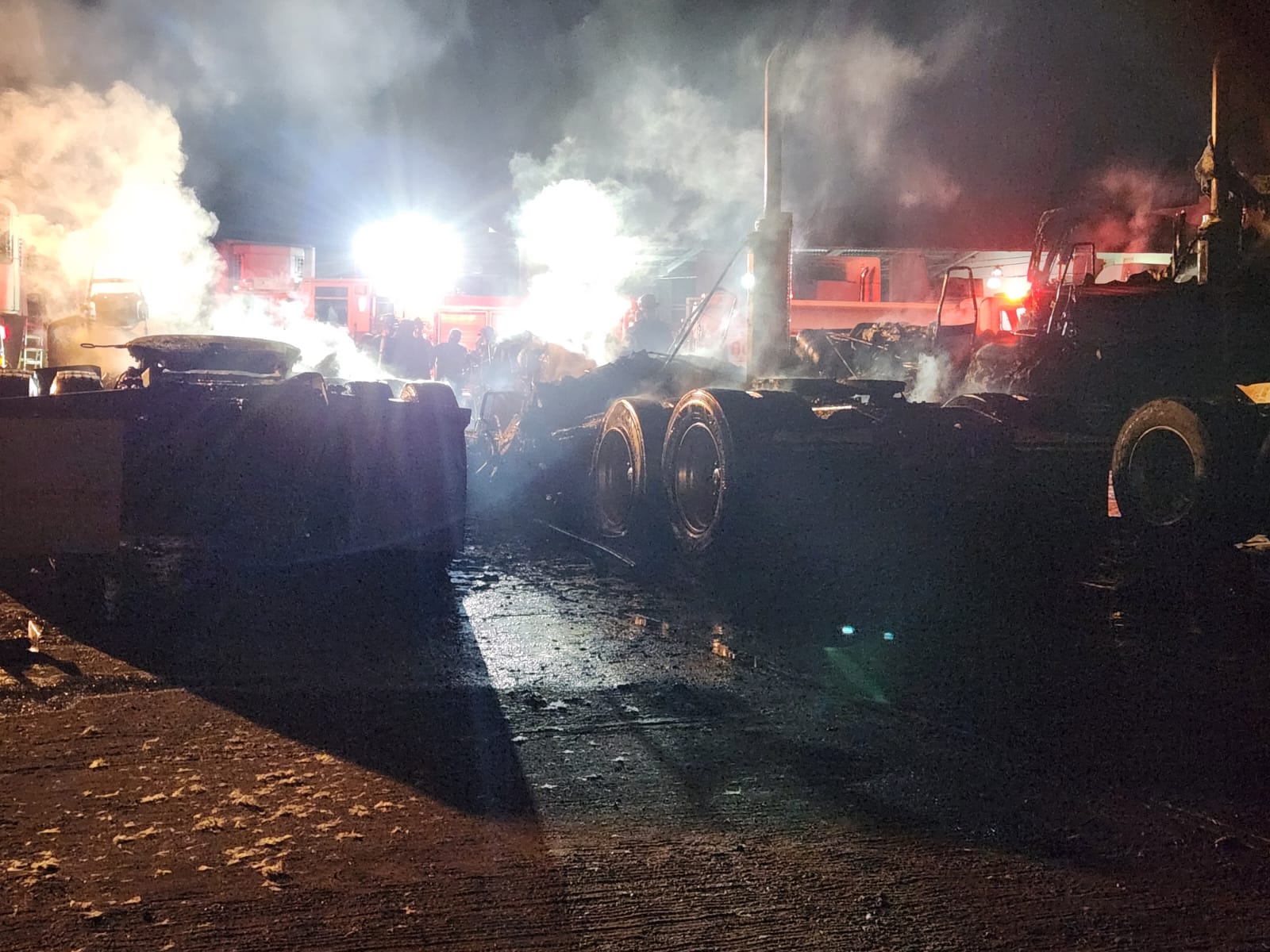 De acuerdo con la información en el sitio, fueron las cabinas de tres tráileres las que quedaron completamente quemadas, mientras que en el lugar no se reportaron personas lesionadas.