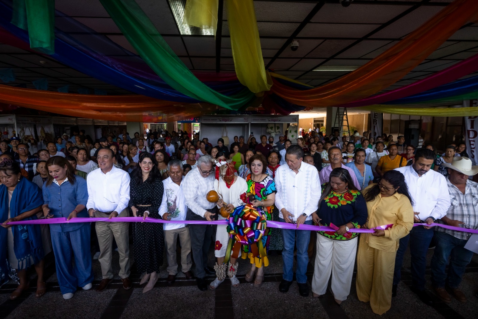 Culiacán, Sinaloa, 29 de agosto de 2025.- Con el compromiso de duplicar los apoyos para las comunidades indígenas, el gobernador Rubén Rocha Moya entregó recursos por 2 millones de pesos para la realización de 163 proyectos productivos de estas comunidades, durante la inauguración del Tianguis de las Comunidades Indígenas que tuvo lugar en la explanada de Palacio de Gobierno, donde fueron exhibidas artesanías y diversos artículos elaborados a mano.