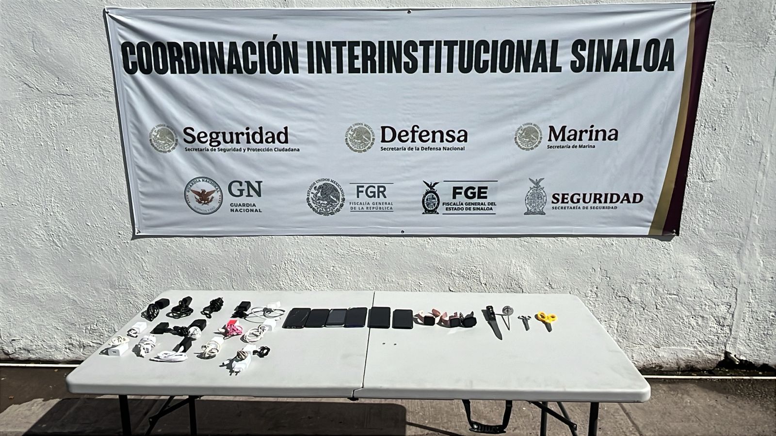 Elementos de la Secretaría de Seguridad Pública de Sinaloa, a través del Grupo de Operaciones Especiales Sinaloa (GOES) de la Policía Estatal Preventiva, en coordinación con el Ejército Mexicano, la Guardia Nacional, la Secretaría de Marina, la Secretaría de Seguridad y Protección Ciudadana, la Fiscalía General de la República y la Fiscalía General del Estado, realizaron este lunes una nueva revisión en el Centro Penitenciario de Aguaruto, en Culiacán, derivado de la cual localizaron objetos prohibidos.