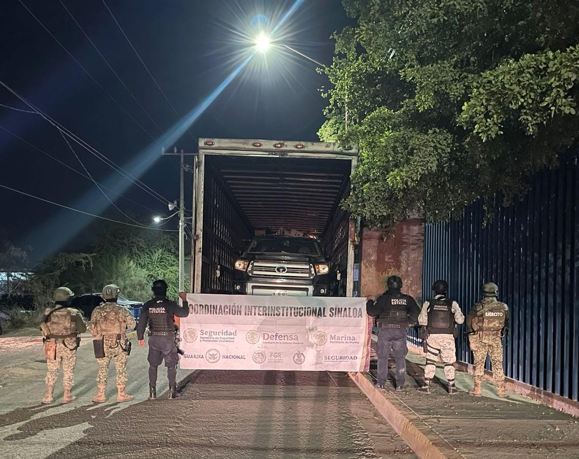 La unidad fue ubicada abandonada en las inmediaciones de la comunidad de Mojolo, municipio de Culiacán. También se confirmó que dentro del camión se encontraba una camioneta marca Toyota, modelo Tundra.