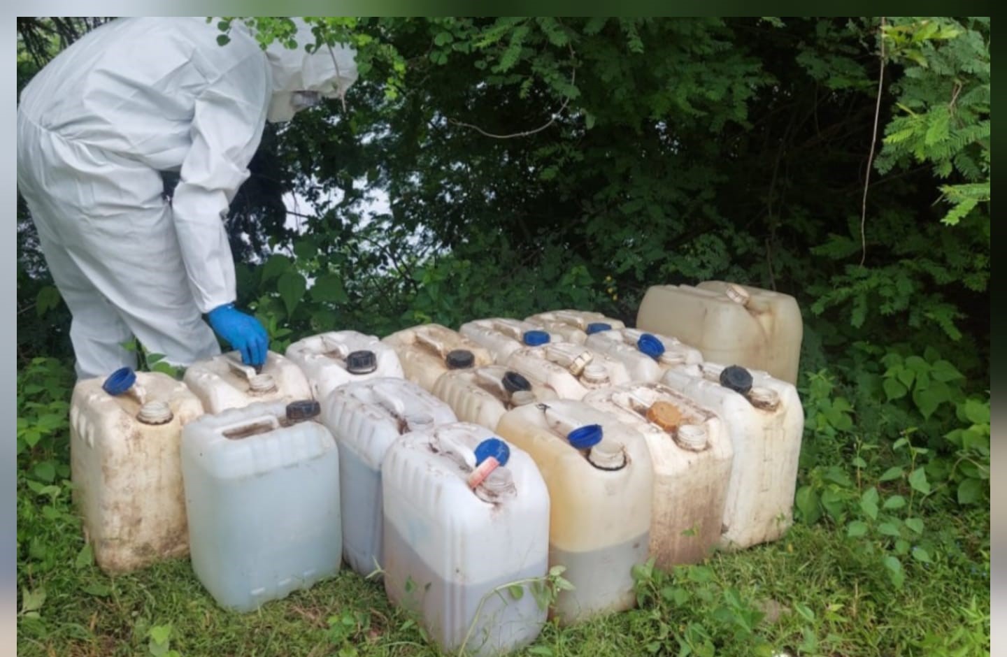 – Tres bidones conteniendo aproximadamente 40 litros de ácido sulfúrico