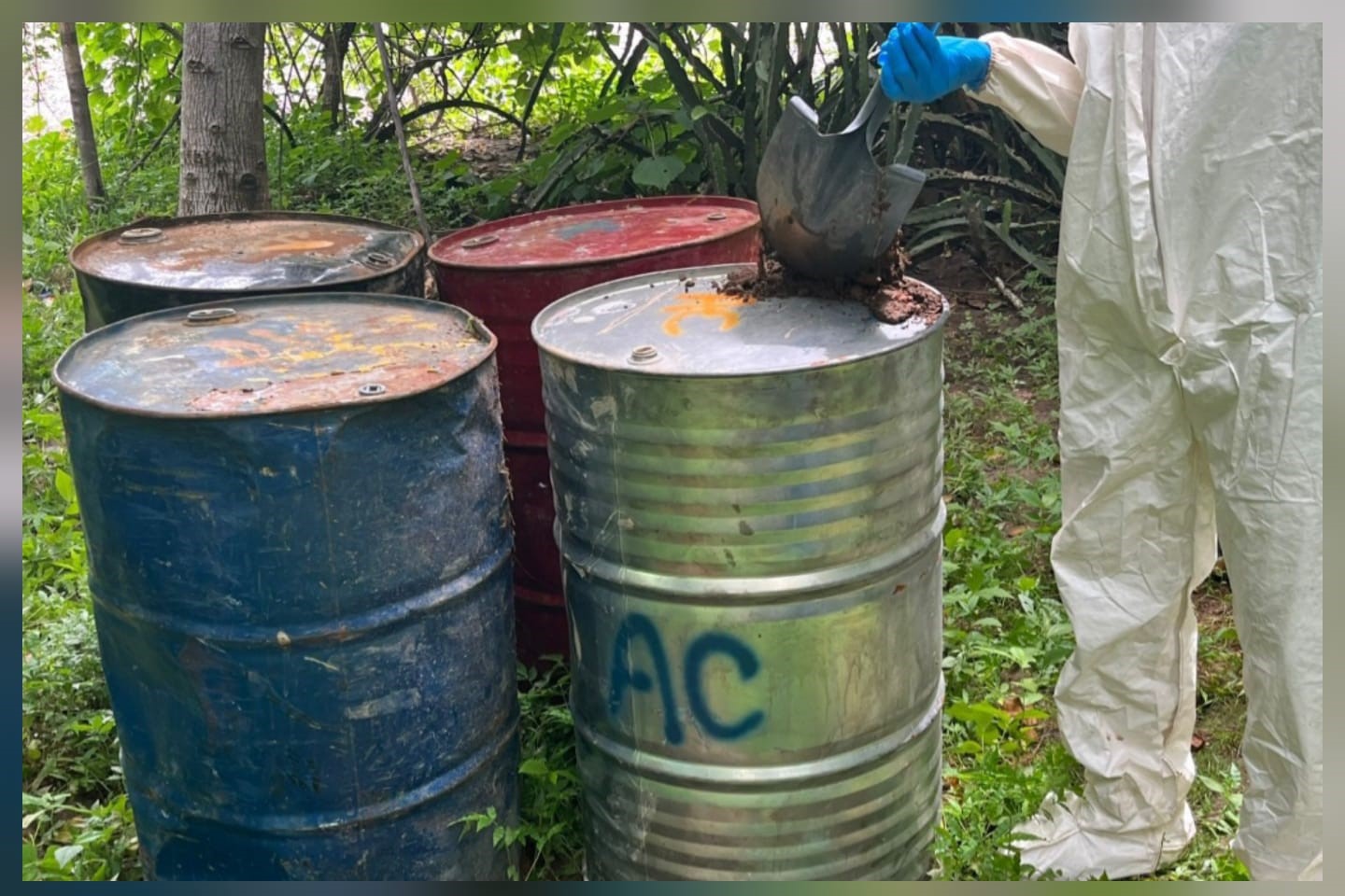 – Un tambo conteniendo aproximadamente 60 litros de ácido