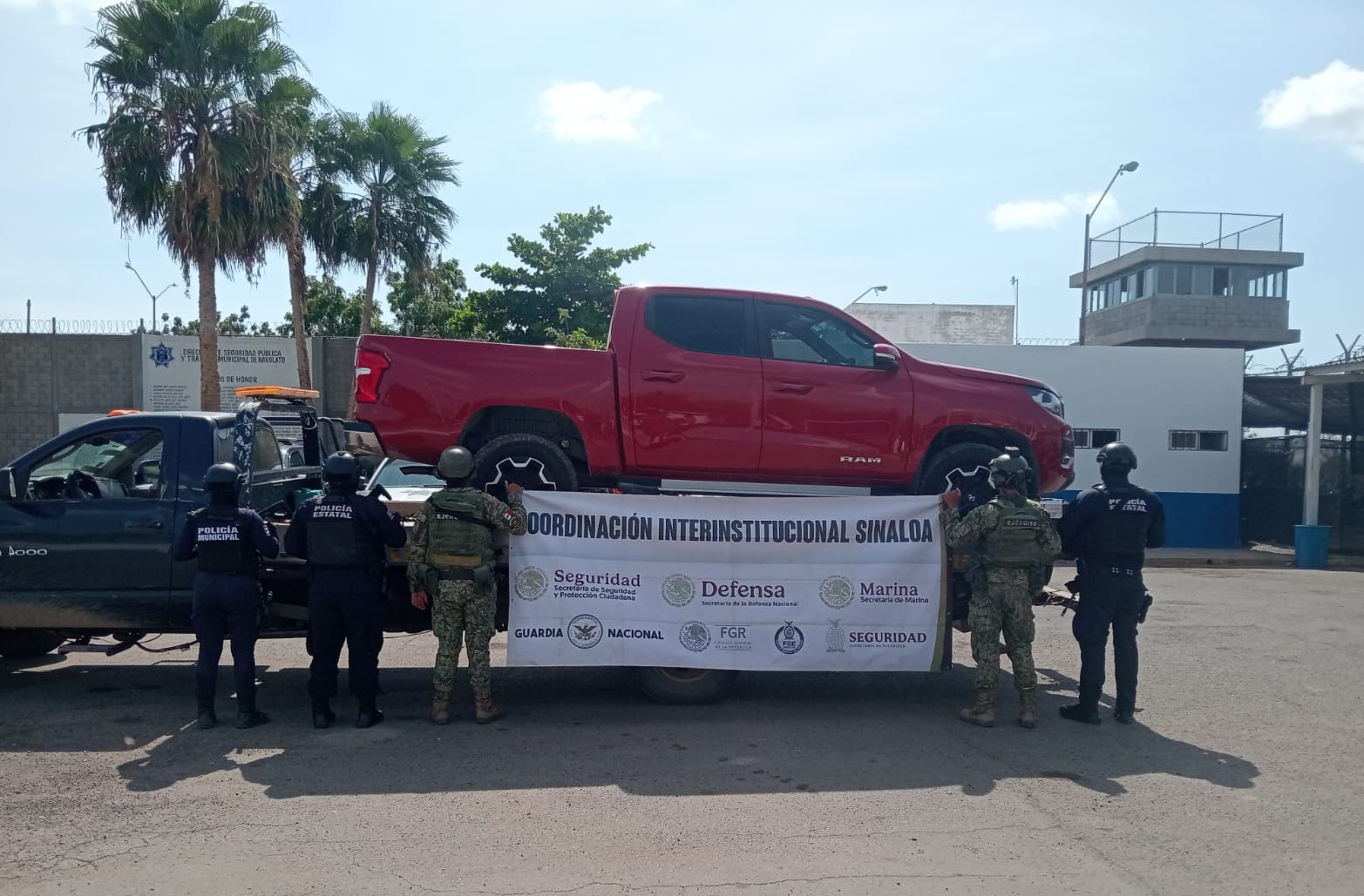 Tras una denuncia anónima al 089 y patrullajes de reconocimiento en las inmediaciones de la comunidad El Castillo, el personal militar, la policía estatal y la policía municipal de Navolato localizaron una camioneta de la marca RAM con reporte de robo vigente.