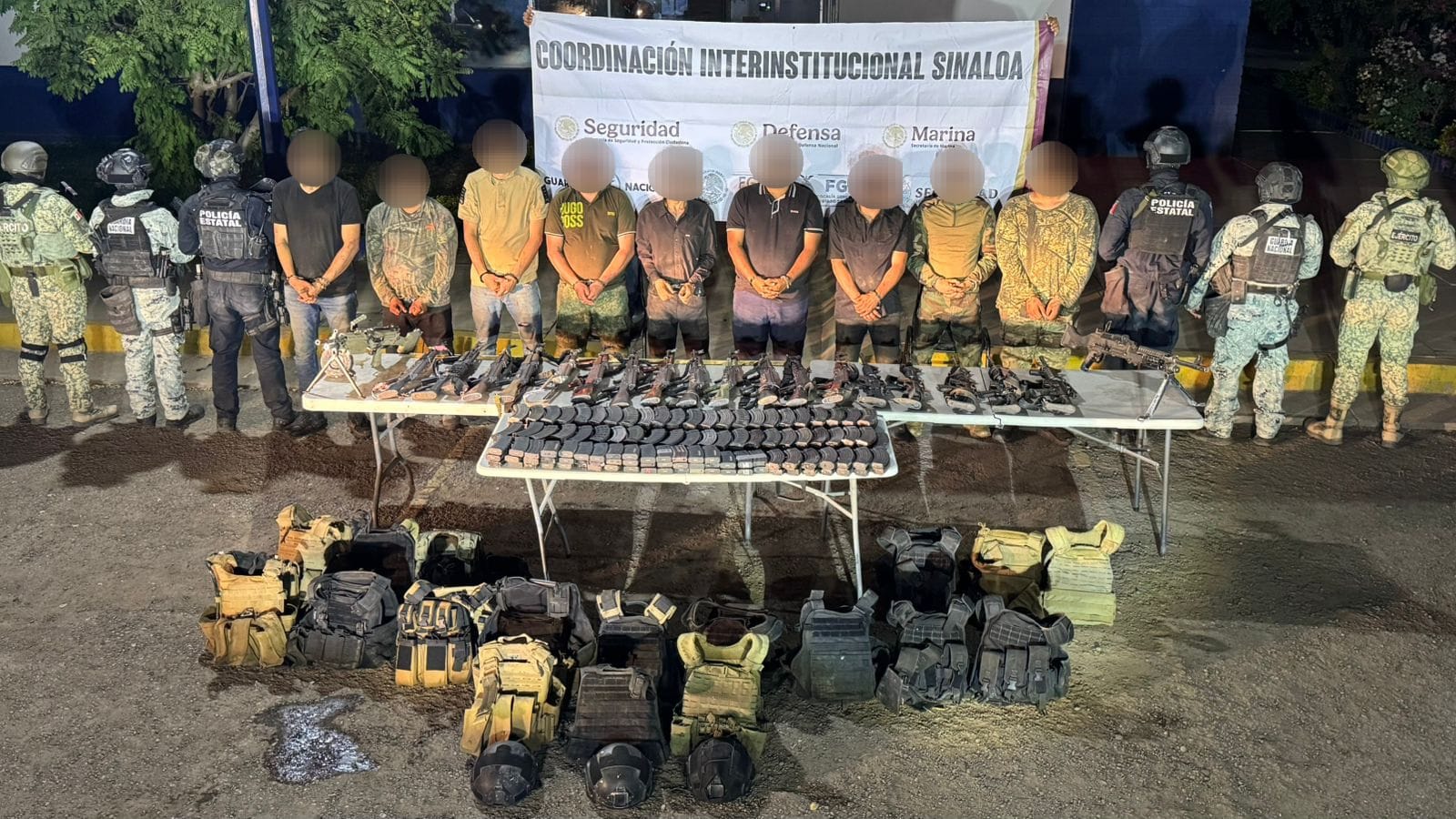 Culiacán, Sinaloa. – Autoridades realizaron un operativo terrestre y aéreo tras la denuncia ciudadana de un enfrentamiento en el poblado El Guasimal, donde aseguraron a 9 civiles, armas largas, cargadores, cartuchos, chalecos y vehículos.
