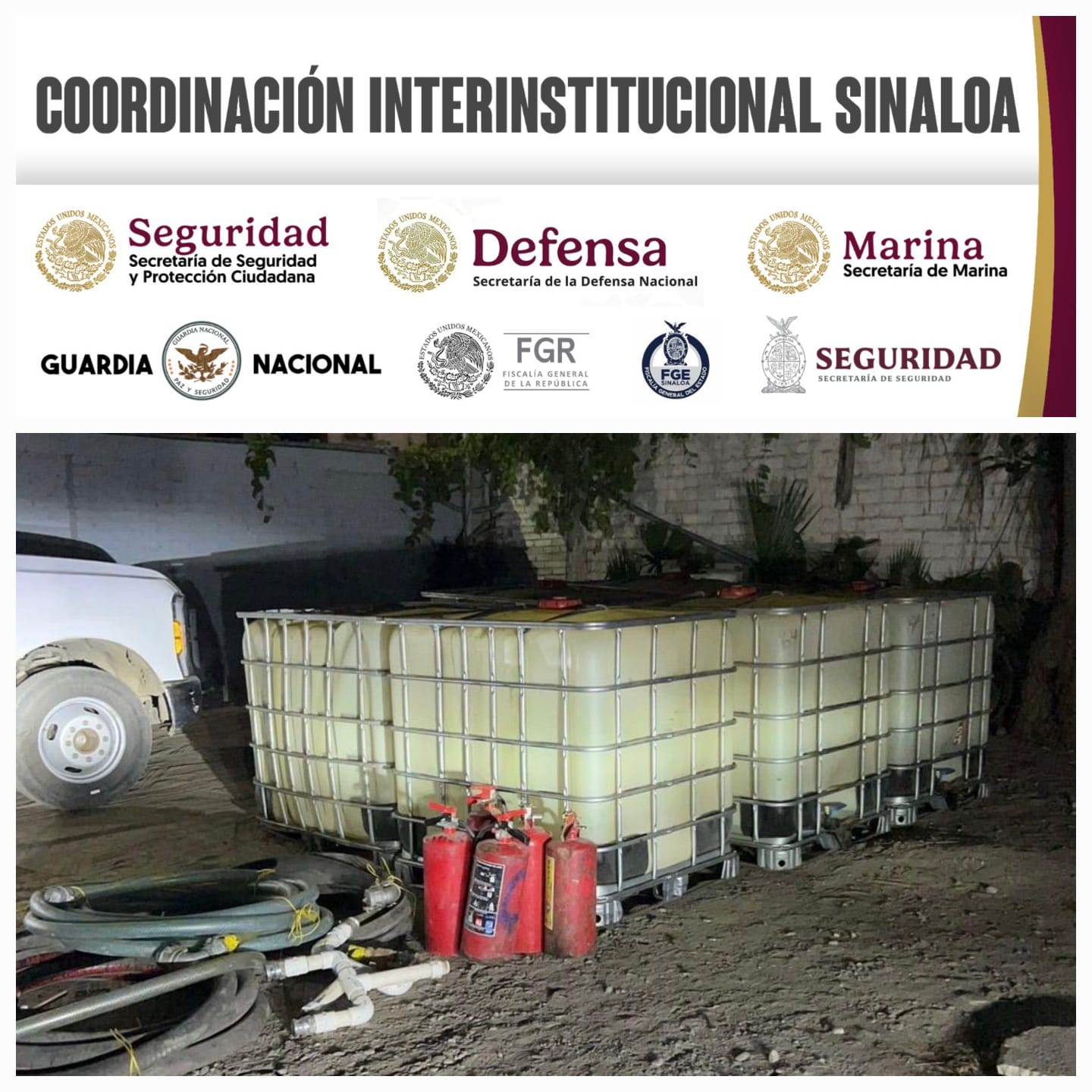 Marinos desmantelan una bodega de huachicol en Rincón de Urías, Mazatlán