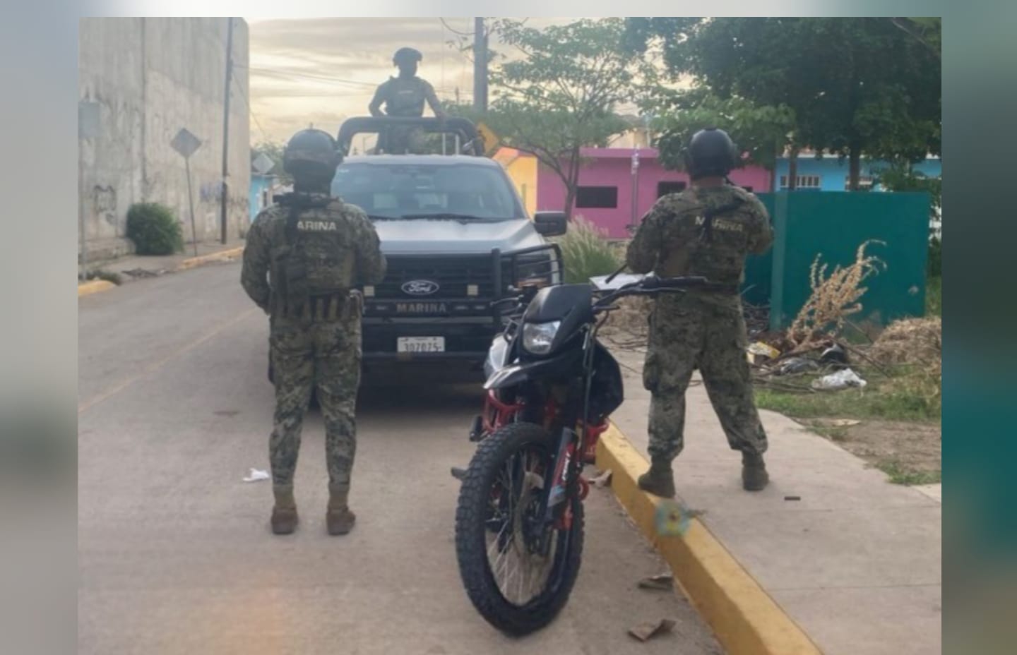 El primer hecho se registró mientras el personal naval llevaba a cabo recorridos terrestres en la colonia Ampliación de Urías. Ahí, observaron una motocicleta estacionada, sin placas de circulación. Al solicitar información sobre la unidad, se percataron de que contaba con reporte de robo.