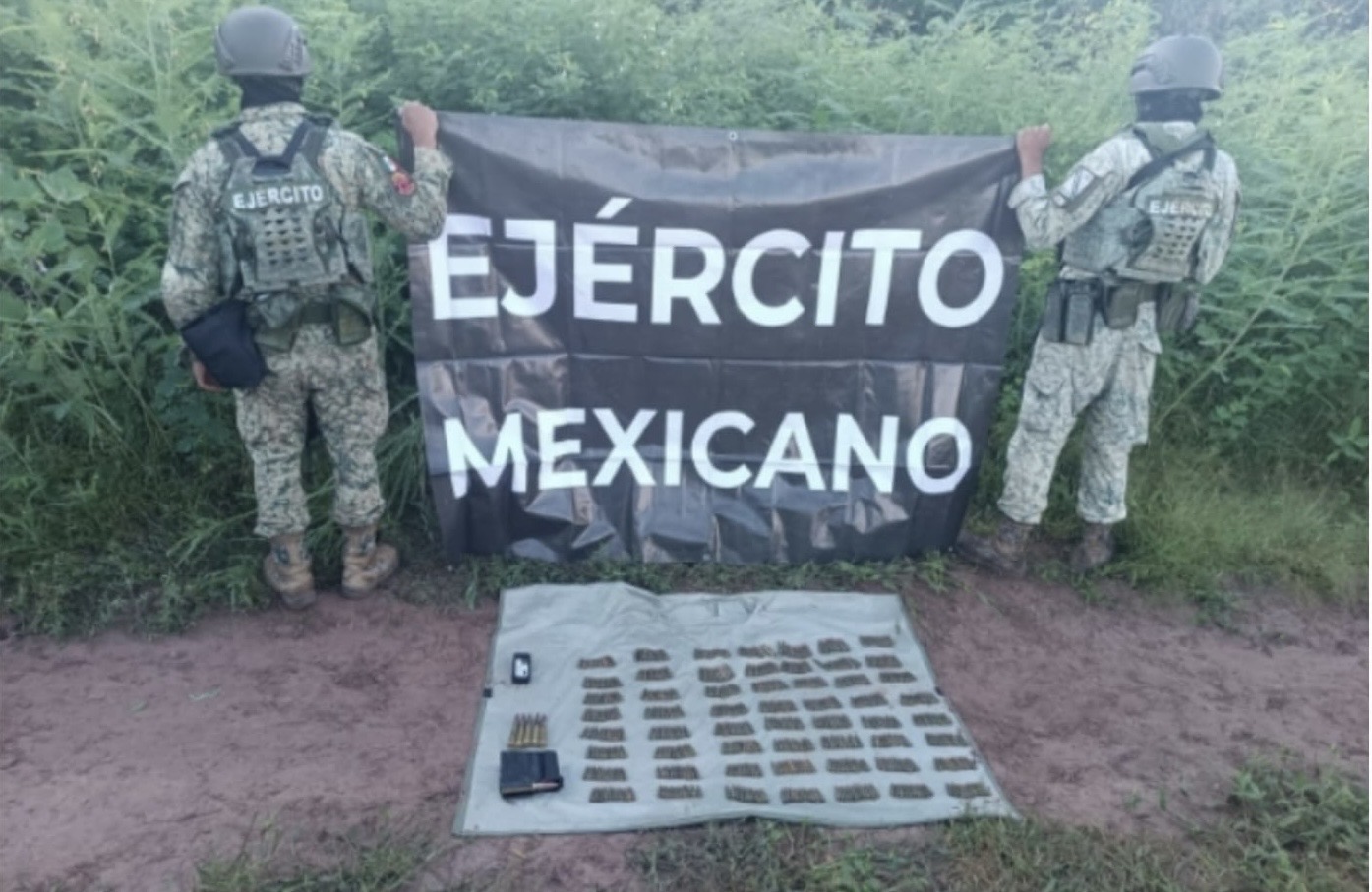 Un primer hecho se realizó durante reconocimientos terrestres en inmediaciones de Real del Álamo Residencial, perteneciente a la capital del estado, donde elementos militares localizaron lo siguiente: