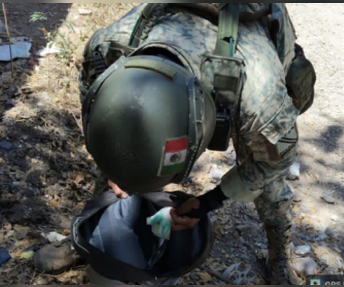 El primer hecho se registró en las inmediaciones de la colonia Guadalupe Victoria, al oriente de Culiacán, en donde el personal militar que realizaba reconocimientos terrestres observó a dos individuos que circulaban a bordo de una motocicleta y que, al observar las unidades oficiales, emprendieron la huida al mismo tiempo que arrojaron una mochila, que, al revisarla, localizaron lo siguiente: