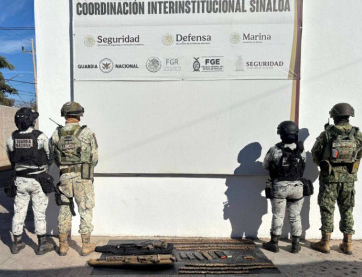 Culiacán, Sinaloa. – Autoridades aseguraron armamento de uso exclusivo de las Fuerzas Armadas en la ciudad capital.