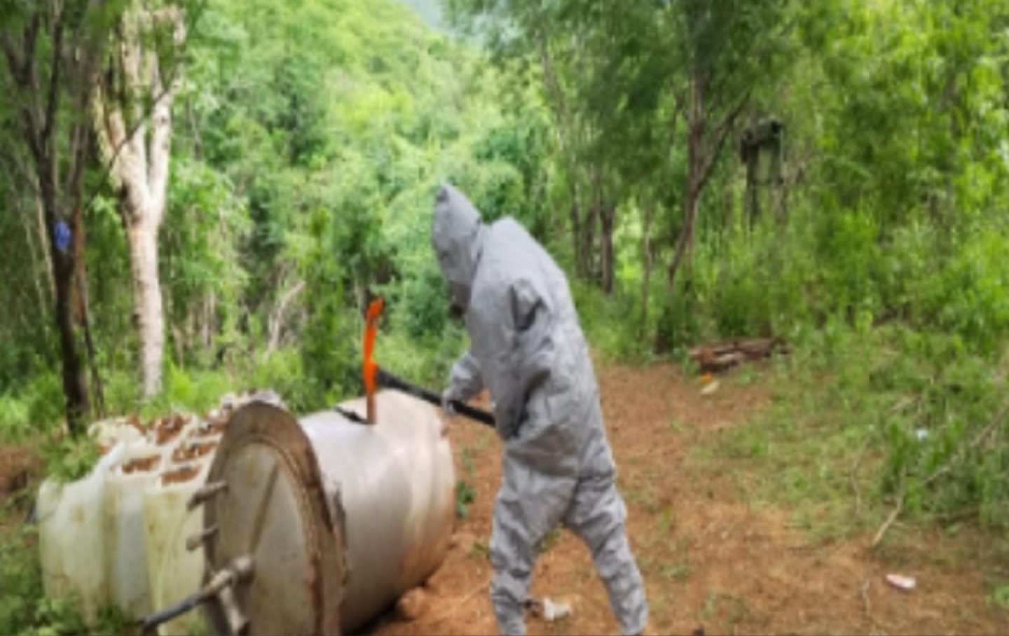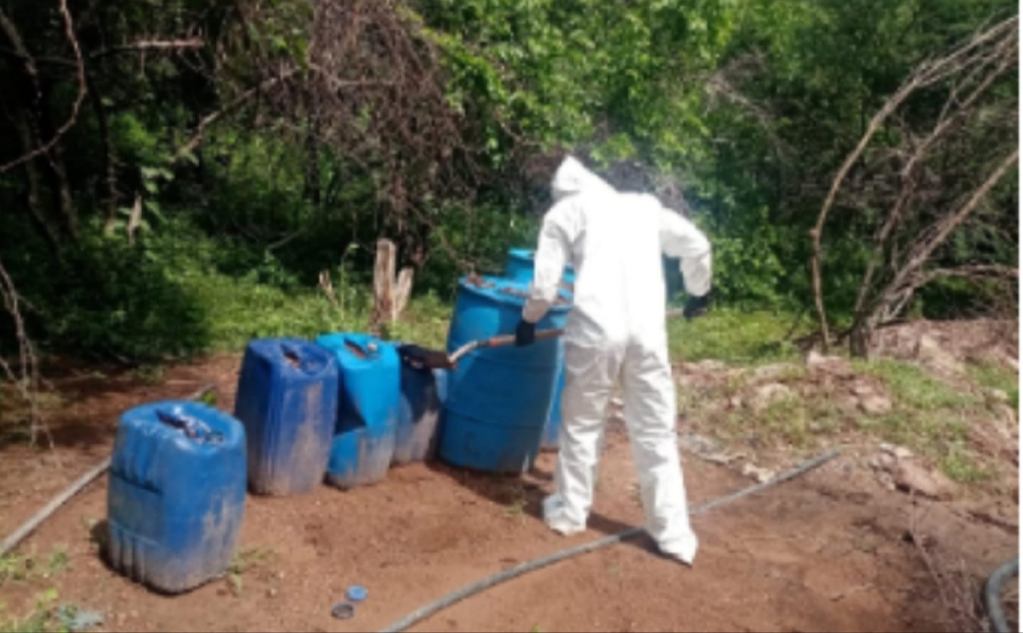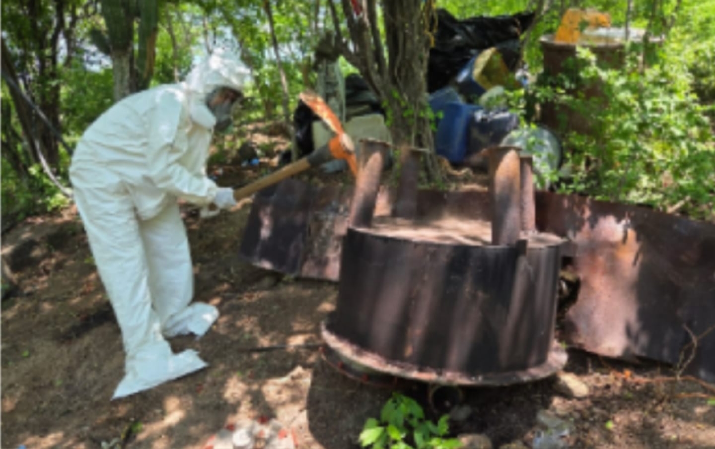 Culiacán, Sinaloa. – Autoridades localizaron y destruyeron cinco áreas de almacenamiento de químicos y material para la elaboración de drogas sintéticas, en Culiacán y Cosalá.