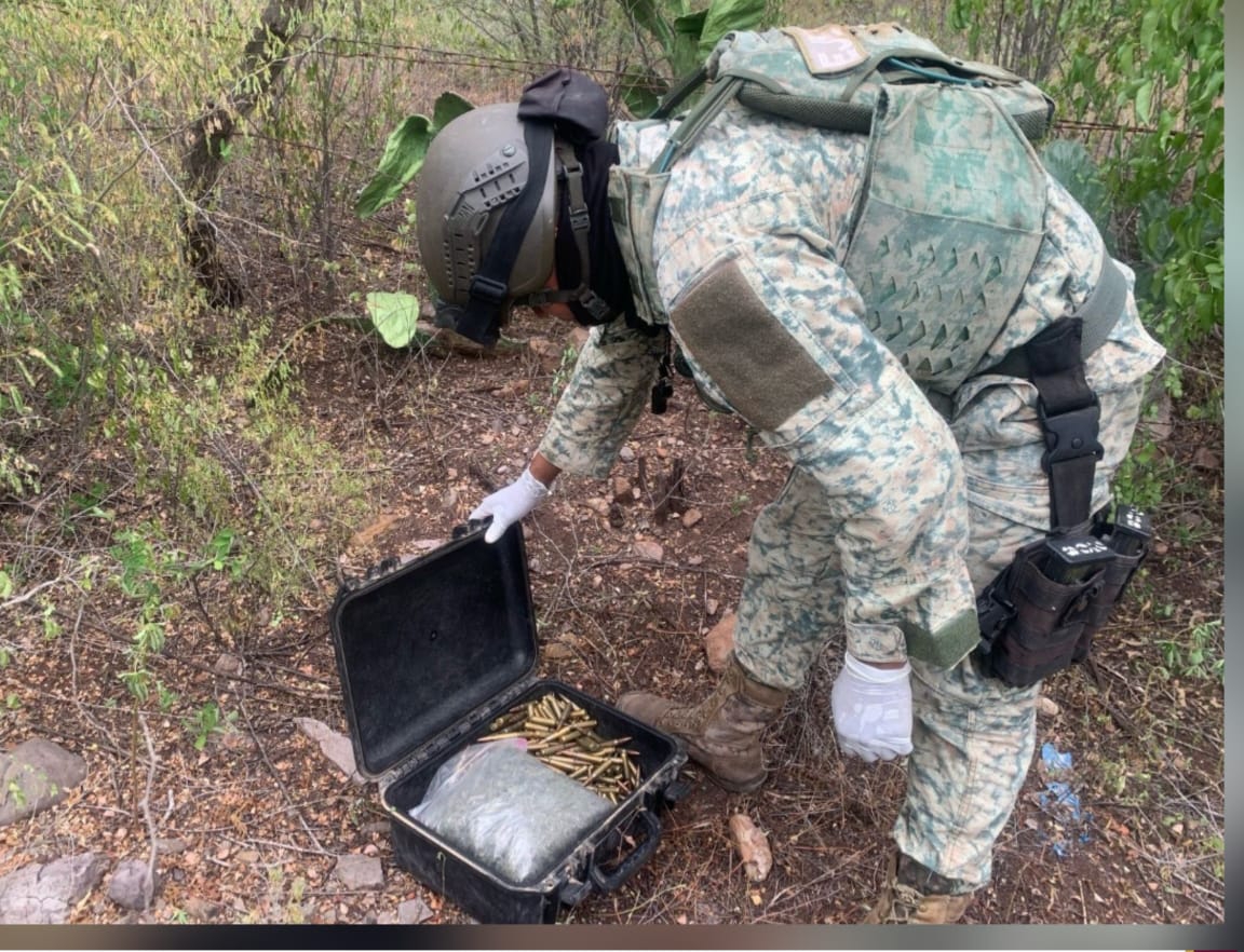 En un primer hecho, los elementos militares realizaban recorridos de seguridad en el poblado Higueras de Abuya, en el municipio de Culiacán, donde localizaron lo siguiente: