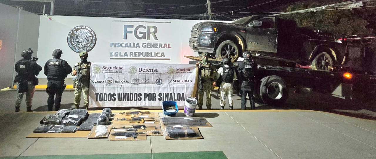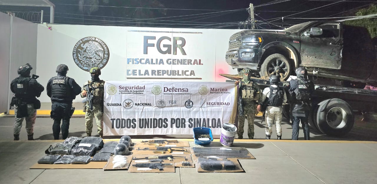 Culiacán, Sinaloa. -Elementos policiacos y militares, aseguraron un arsenal en San Francisco, Culiacán.
