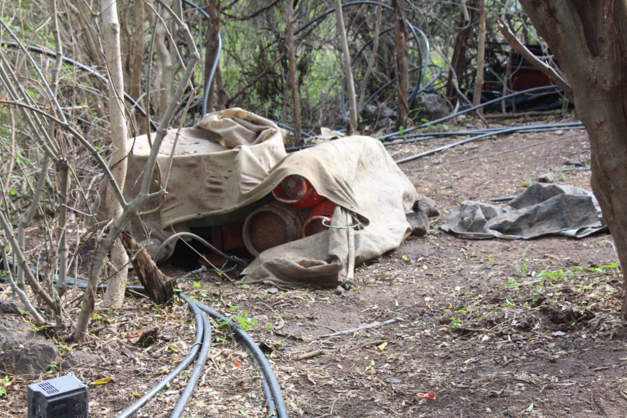 Militares localizan más de 500 litros de metanfetamina líquida, en un narcolaboratorio en Sanalona, Culiacán
