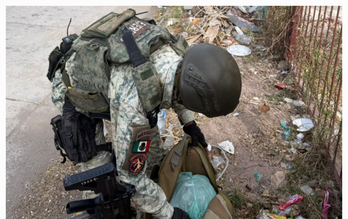 Militares se encuentran tirada en la calle una mochila con más de 400 dosis de droga, en Ahome