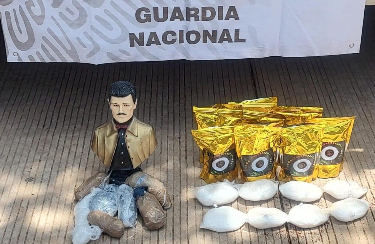 ¡No hubo milagro! Hallan ‘cristal’ dentro de una estatuilla de Malverde, en una paquetería de Culiacán