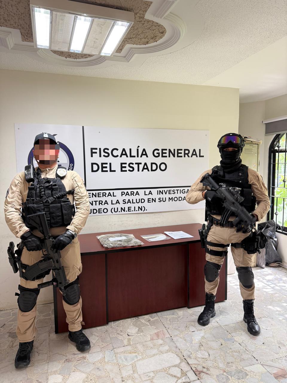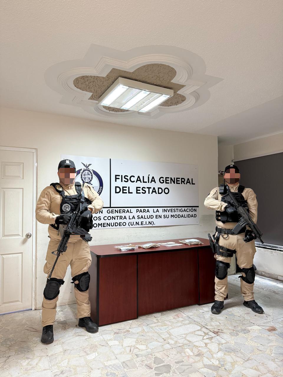 También se decomisaron 256 envoltorios y 48 bolsas con cristal; 68 envoltorios y 57 bolsas con cocaína; además de 2 envoltorios y 536 bolsas con metanfetamina.