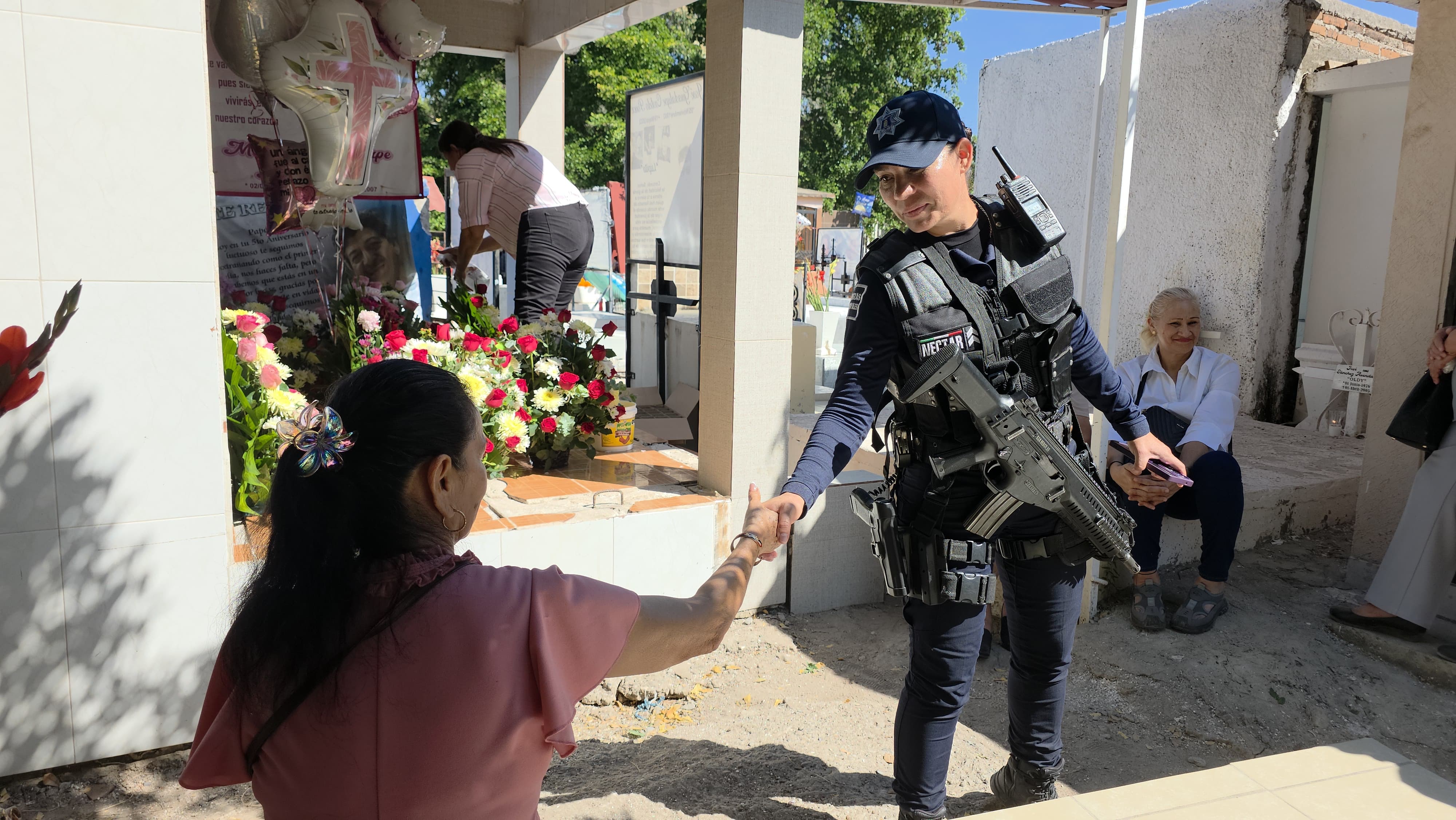 El despliegue operativo abarcó los 85 panteones del municipio y sus sindicaturas, con presencia constante mediante recorridos pie tierra, vigilancia estacionaria y patrullajes preventivos realizados por los tres órdenes de gobierno.