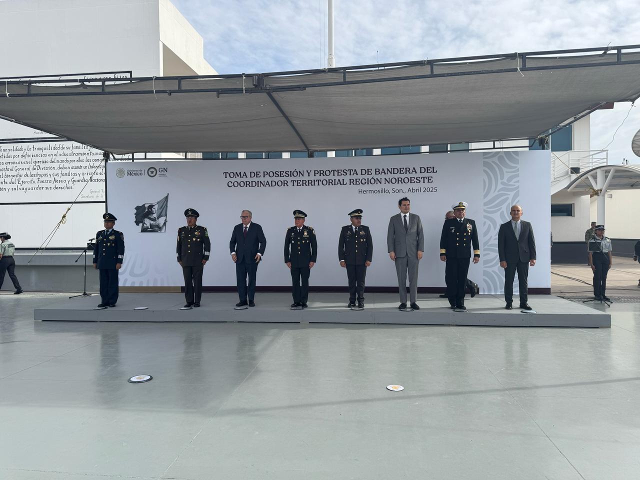 Hermosillo, Sonora. – El Gobernador del Estado Dr. Rubén Rocha Moya, fue invitado de honor a la toma de posesión al mando y protesta de bandera, del General de Brigada Estado Mayor Crisóforo Martínez Parra, como Coordinador Territorial Región Noroeste de la Guardia Nacional, el cual estuvo a cargo del General de División Hernán Cortés Hernández, Comandante de la Guardia Nacional federal.