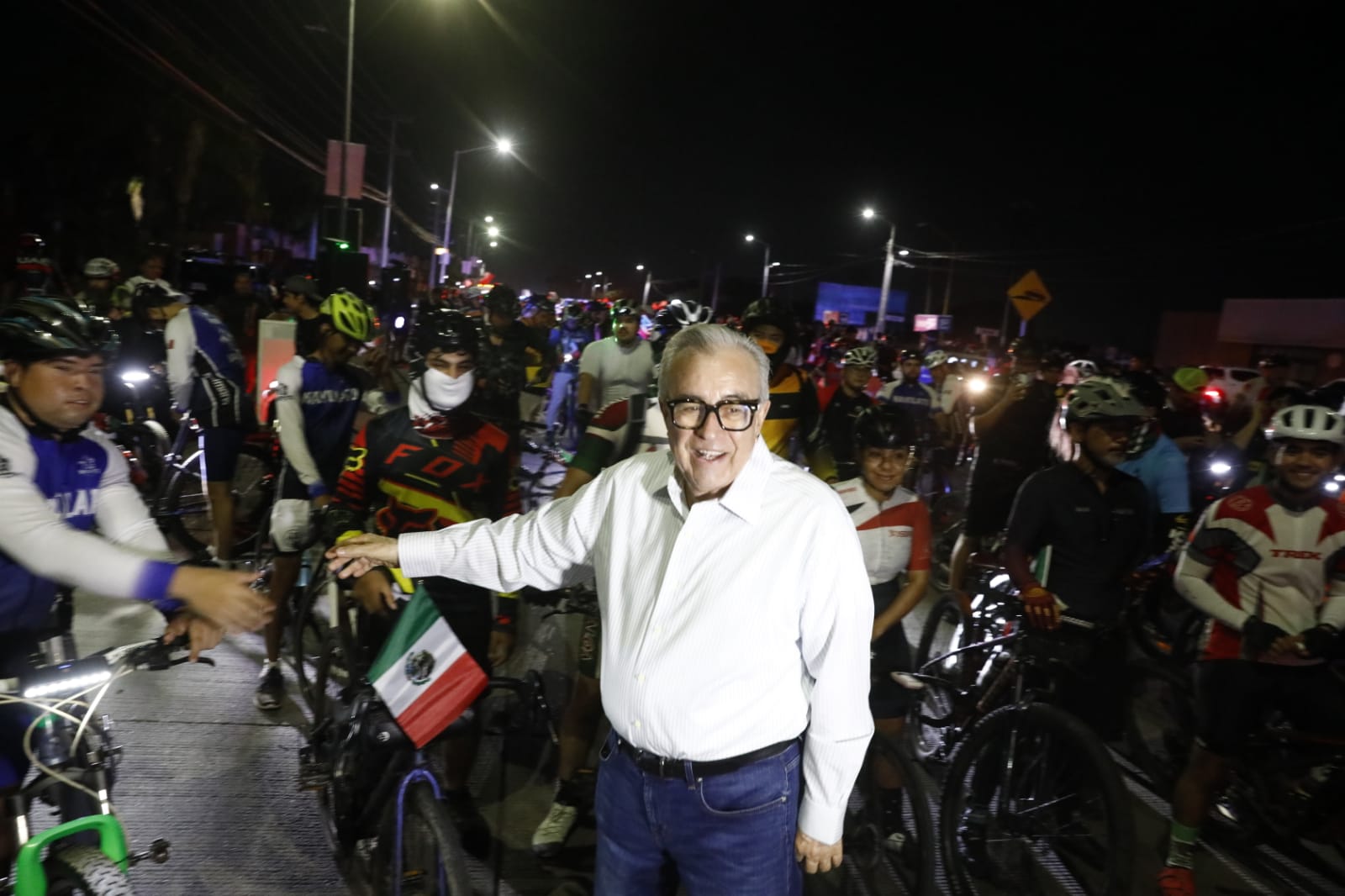 Culiacán, Sinaloa. – En el marco de las festividades patrias y buscando promover actividades que fortalezcan el tejido social, así como el desarrollo económico de Sinaloa y de este corredor turístico-gastronómico de la capital, el gobernador Rubén Rocha Moya, dio el banderazo de arranque a la rodada “Aventura Narnia: Rodada Mexicana 2025”, recorriendo la ruta Culiacán-Imala-Narnia, estrategia que busca promover una cultura deportiva y de sana convivencia entre las juventudes y la población en general.