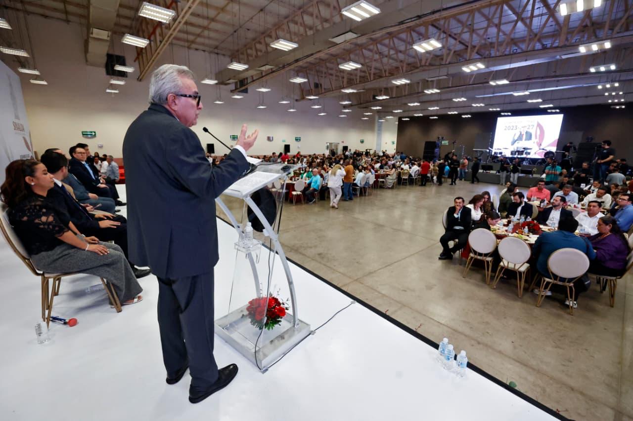 Al dar la bienvenida, el líder del STASE, Michel Benítez Uriarte, dijo que es un honor asistir junto con el gobernador Rocha, a esta ceremonia donde se reconoce la trayectoria de quienes han dado su vida laboral al servicio del Estado, y con ello, al bienestar de Sinaloa.