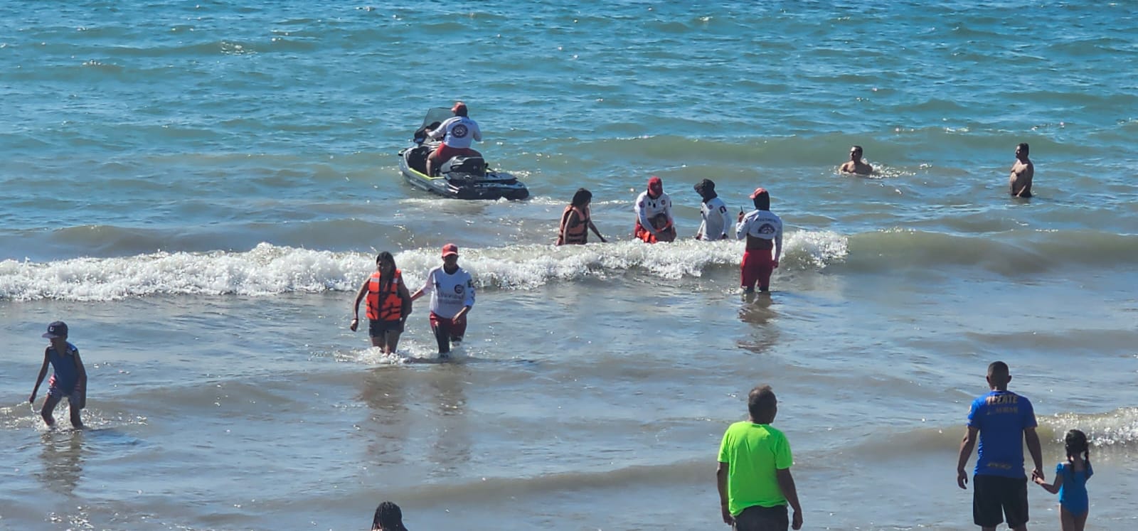 Gustavo Espinoza, comandante del cuerpo de salvavidas, informó que la activación de los protocolos de auxilio y rescate se registró en la zona de Playa Norte, frente al Monumento al Pescador. Personal del área, con apoyo de elementos de zonas colindantes y tripulantes de jetski, se sumaron a las maniobras, logrando rescatar a los paseantes.