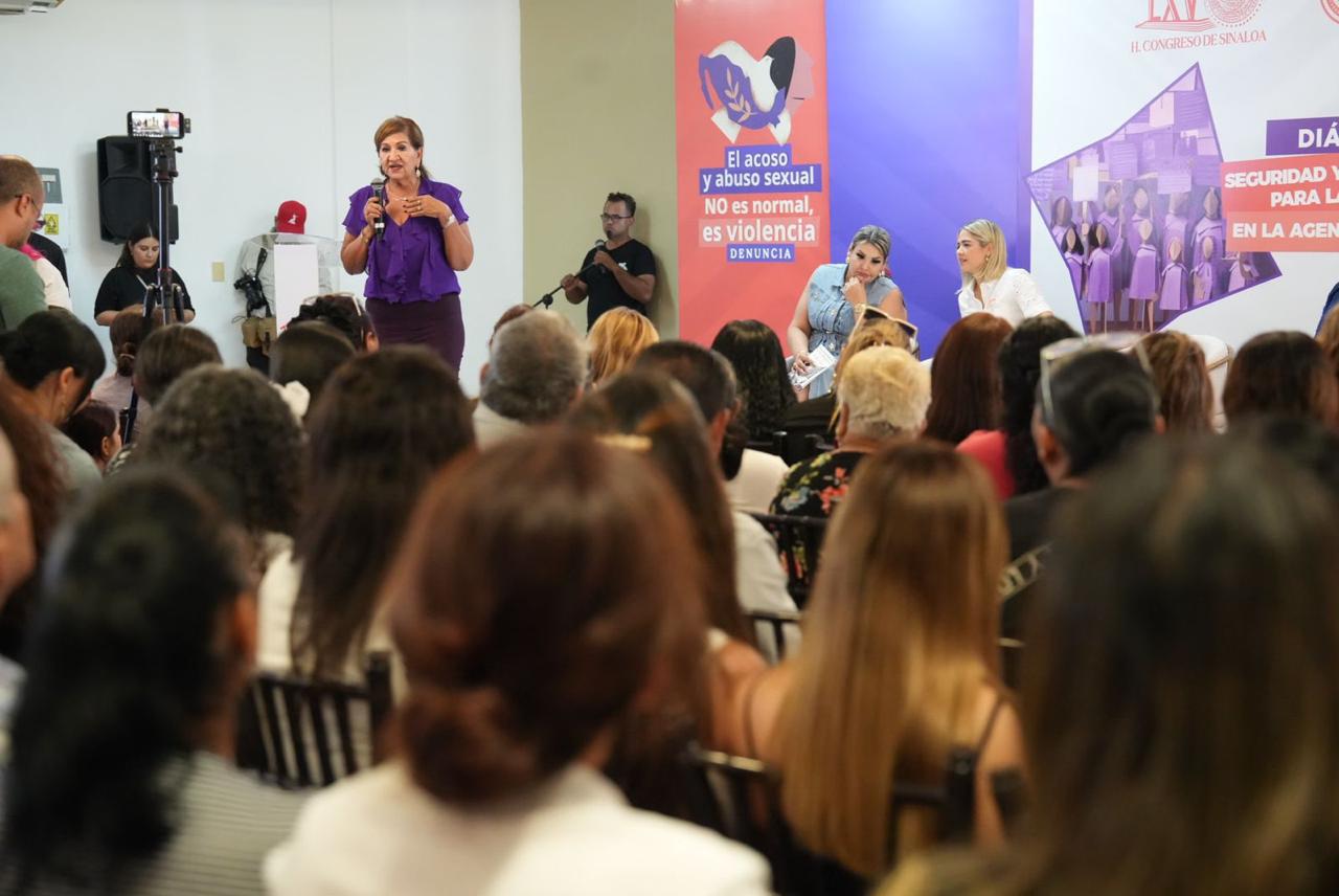 Este fin de semana, como parte de su agenda de trabajo legislativo en el sur de Sinaloa, estuvo acompañada de la alcaldesa de Mazatlán, Estrella Palacios Domínguez, las diputadas Karla Ulloa y Rita Fierro Reyes, además de mujeres líderes del STASE y grupos sociales, en los “Diálogos: sobre seguridad y bienestar para las mujeres en la agenda legislativa”, celebrado en el marco de los 16 días de activismo contra la violencia de género.