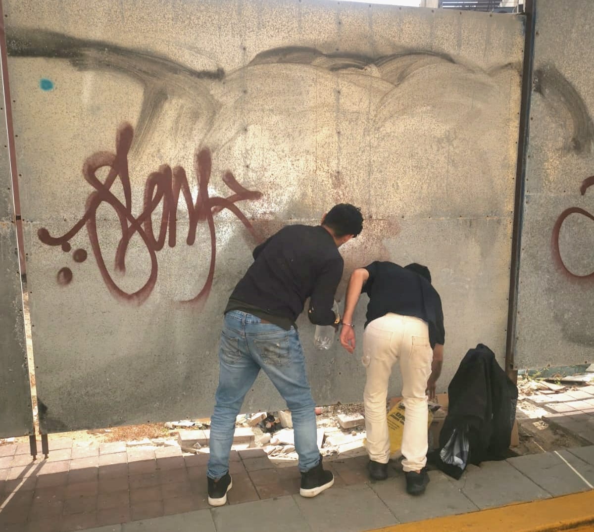 Sorprenden a jóvenes grafiteando en Mazatlán; tuvieron que limpiar las paredes