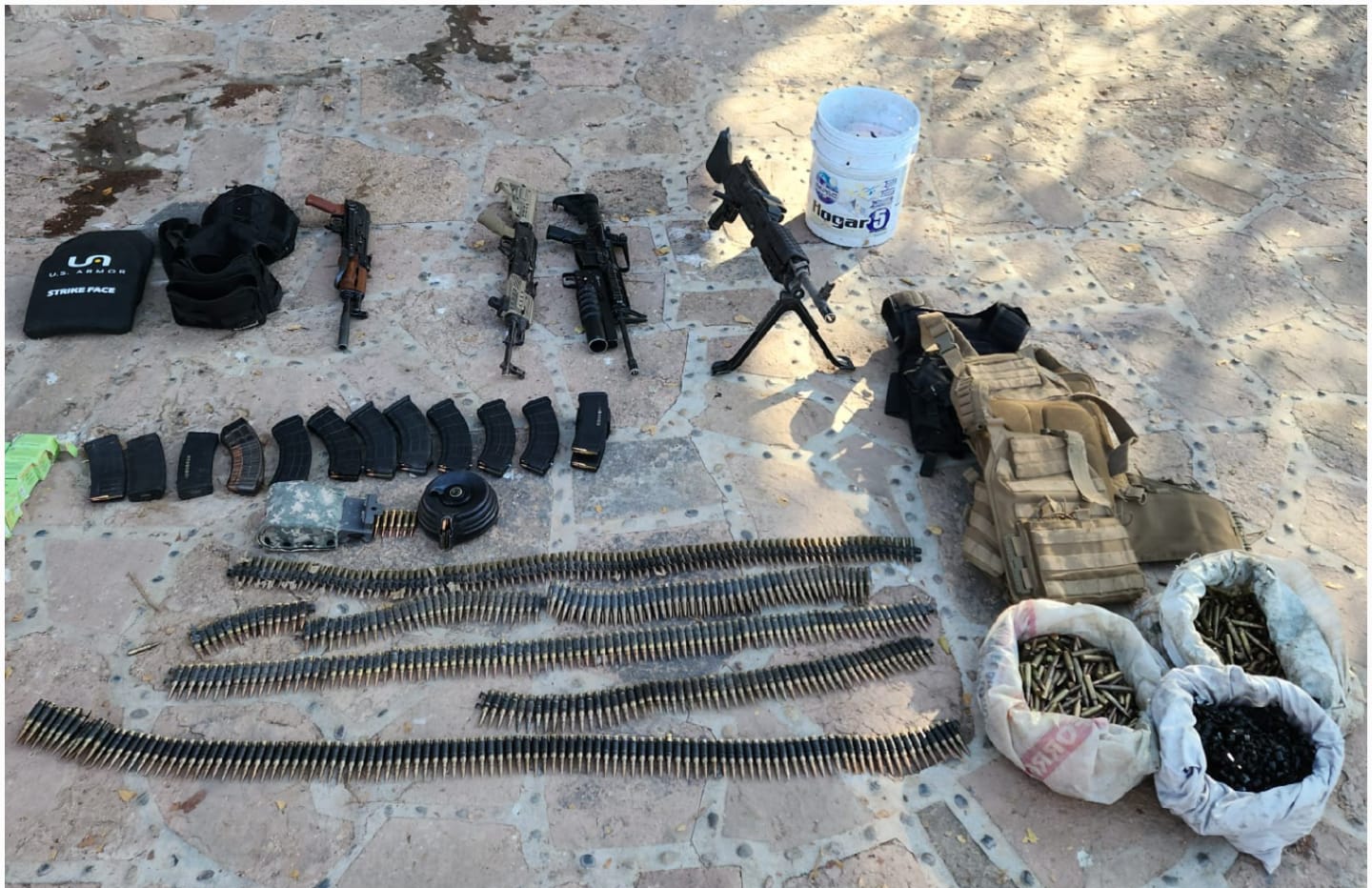 Personal del Ejército Mexicano, en coordinación con la Guardia Nacional, la Fiscalía General de la República, la Fiscalía General del Estado y la Secretaría de Seguridad Pública del Estado a través de la Policía Estatal Preventiva, llevó a cabo el aseguramiento de armas, municiones y tres vehículos, uno de ellos con reporte de robo en el municipio de Culiacán.