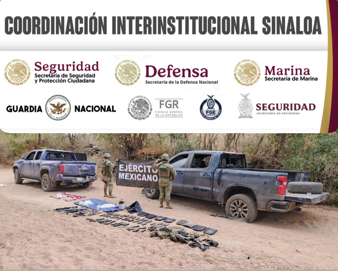 Tras agresión a militares en Tepuche, aseguran dos camionetas, armas, equipo táctico y ‘ponchallantas’