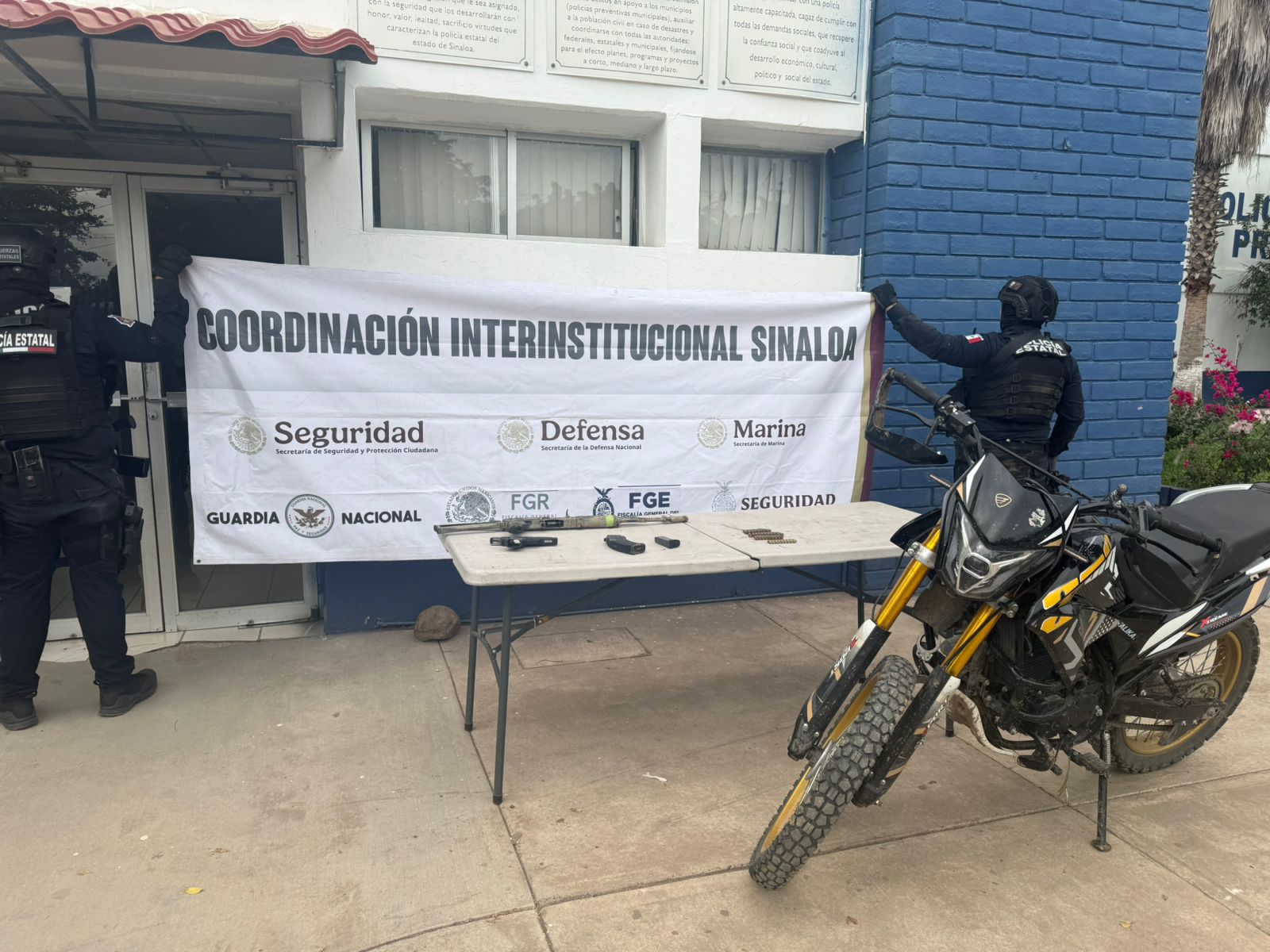 Tras persecución aseguran una moto y armas en Yebavito, Navolato; sus ocupantes escaparon entre una milpa