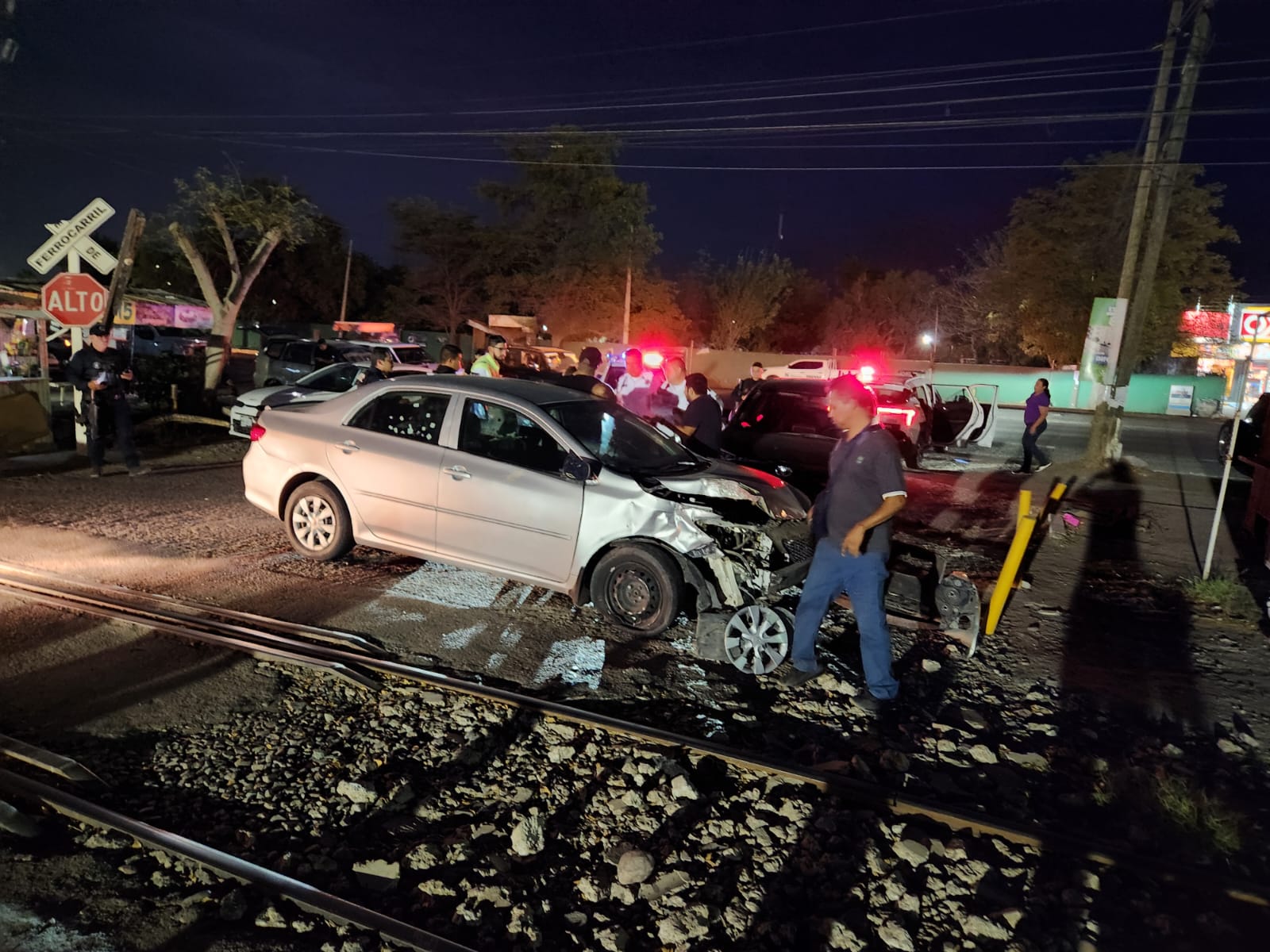 Culiacán, Sinaloa.- Un Toyota Corolla fue embestido por el tren la noche de este martes 21 de mayo justo afuera del penal de Aguaruto, en Culiacán.