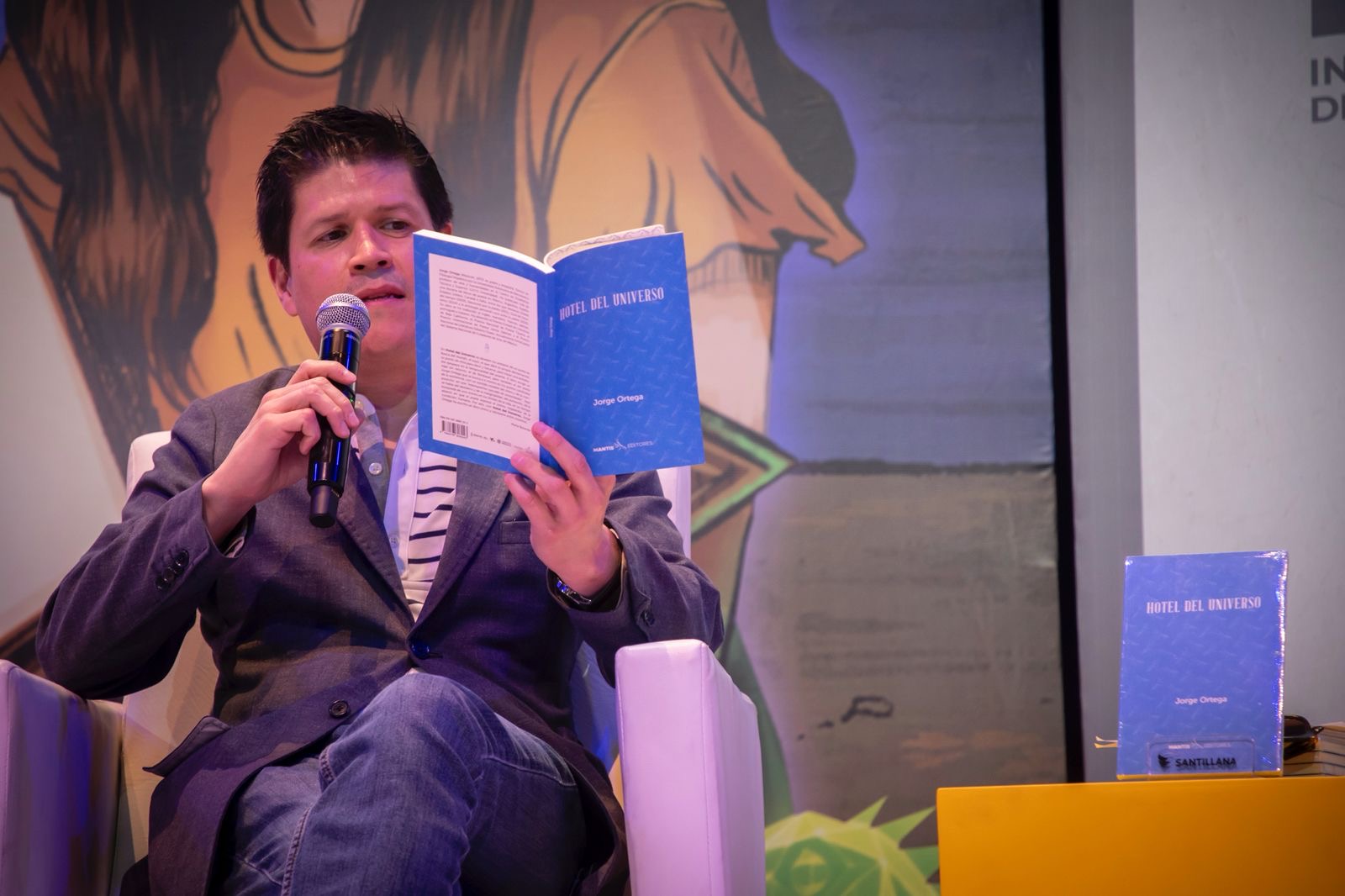 A las 15:00 horas, el escritor Jorge Ortega (Mexicali) presentó Hotel universo, publicado por Editorial Mantis / ISIC, acompañado por el comentarista Jesús Ramón Ibarra. Durante la charla, Ortega profundizó en los ejes que atraviesan su libro: el viaje interior del poeta, el eco de Rimbaud, el destierro, la marginalidad y la búsqueda del yo como un trayecto luminoso dentro de la existencia humana. Su lectura llevó a los asistentes a un diálogo cálido, donde se reconoció la fuerza rítmica y el pulso poético de la obra.