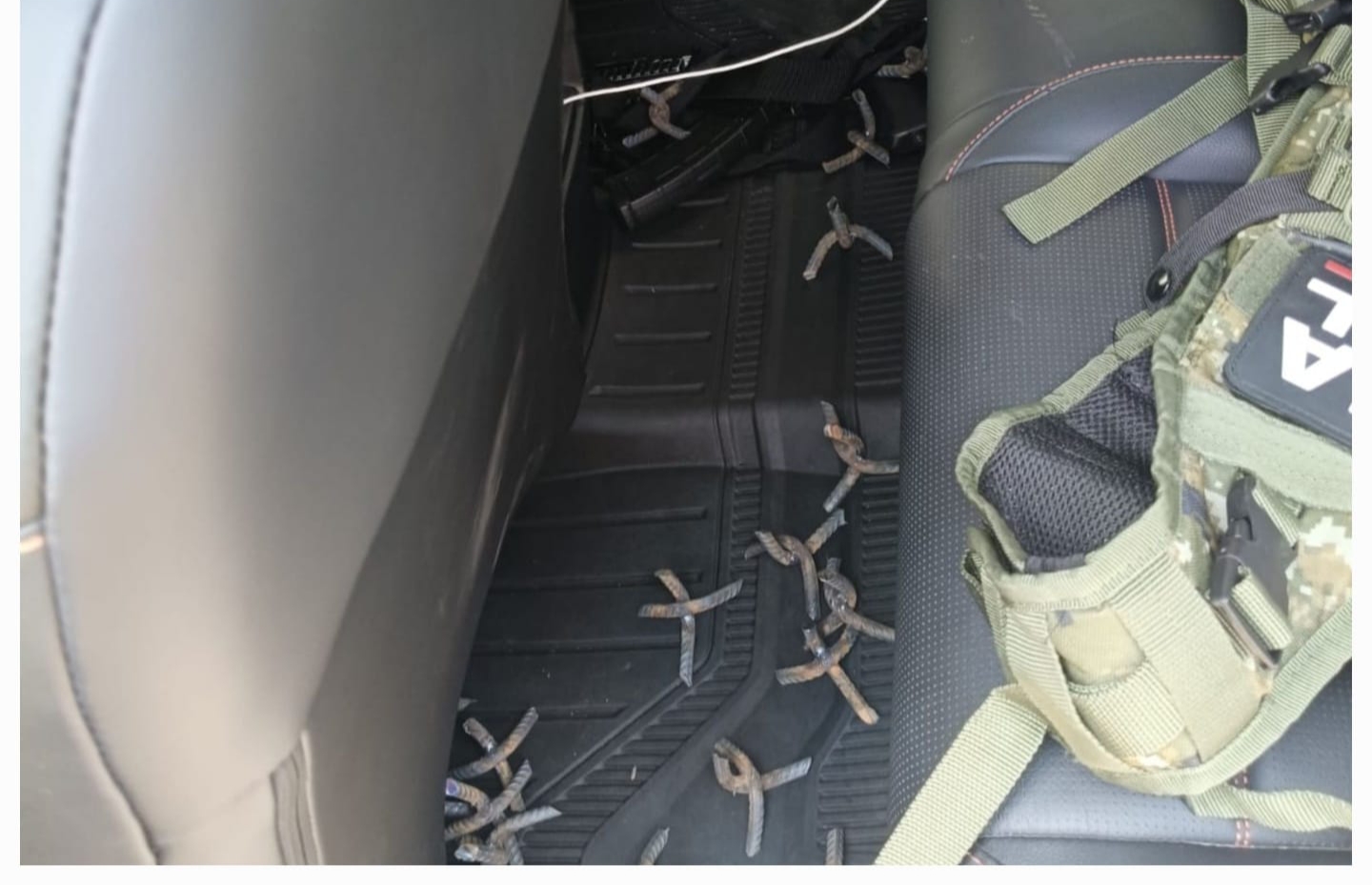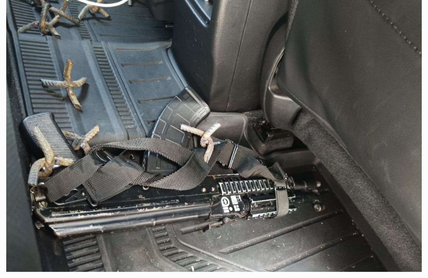 En el interior de la unidad se localizó un arma larga tipo AK-47 calibre 7.62×39 mm y un chaleco con cuatro cargadores abastecidos con cartuchos calibre 7.62×39 mm, además de puntas de acero.